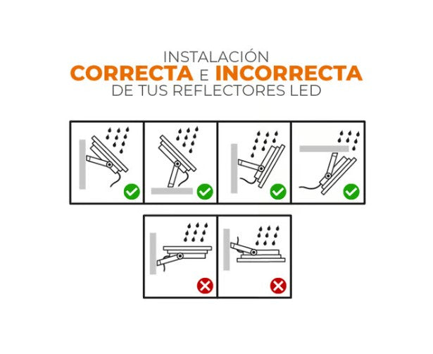 - Protección IP65: El reflector queda resguardado del polvo y chorros de agua en cualquier dirección.